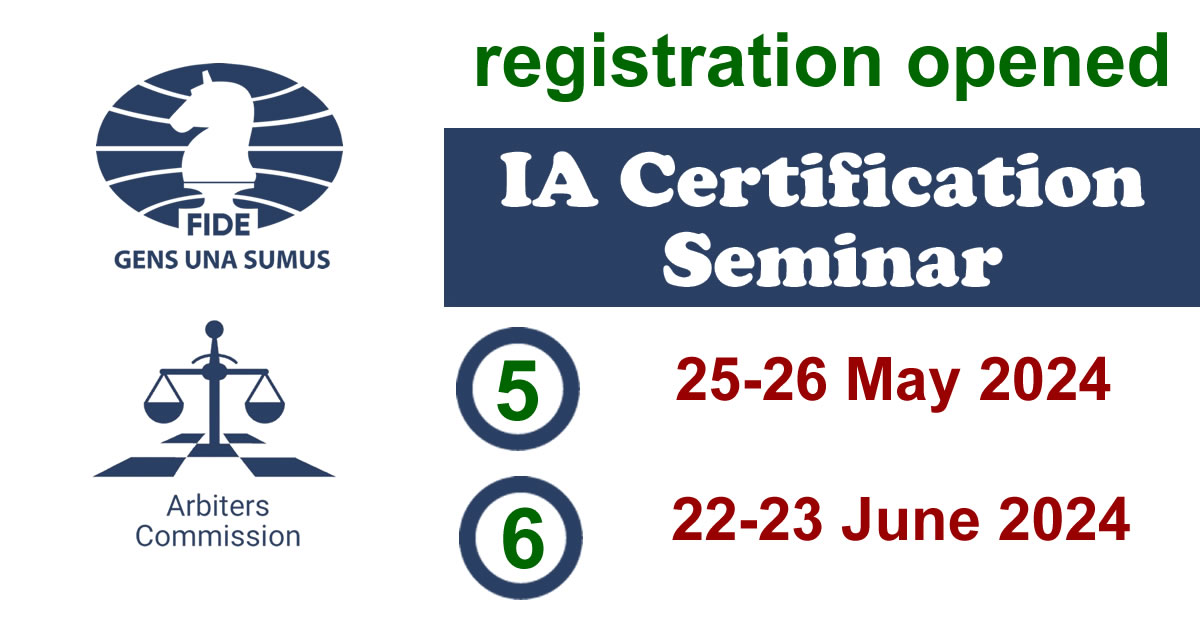 The 216th Internet-based FIDE Arbiters’ Seminar is going to be organized from 27/01/2026 to 31/01/2026 by the Asian Chess Federation, under