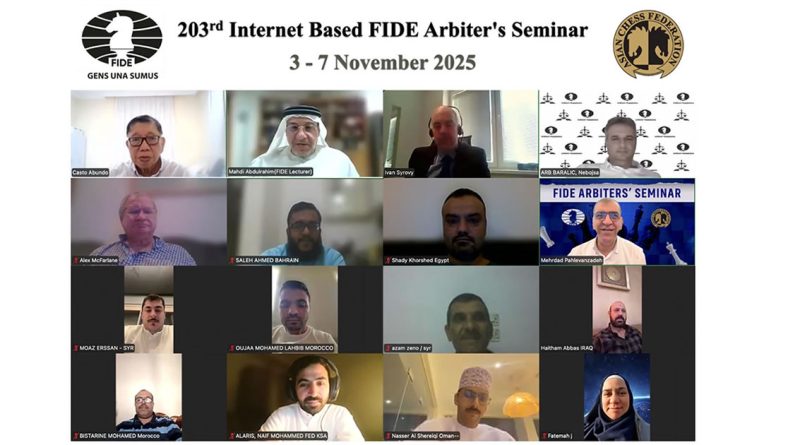 The 203rd Internet Based FIDE Arbiters’ Seminar (Asian Chess Federation) was held from 3rd to 7th November 2025. It was organized by the Asian Chess Federation, under the auspices of FIDE.
