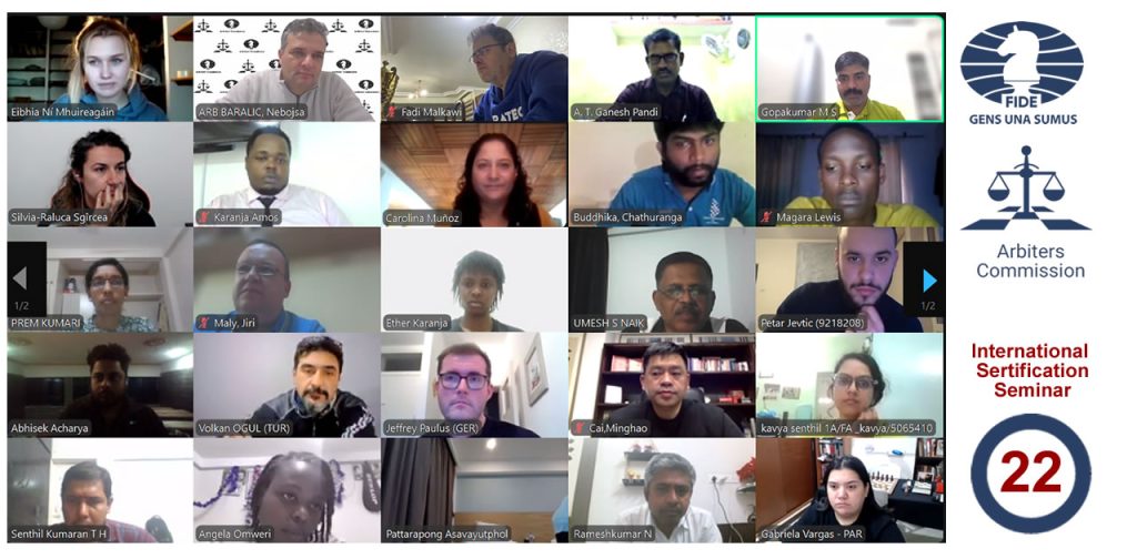 The 22nd Internet Based International Arbiter Certification Seminar was held from 3rd to 11th January 2026. It was organized by the FIDE Arbiters’ Commission, under the auspices of FIDE.