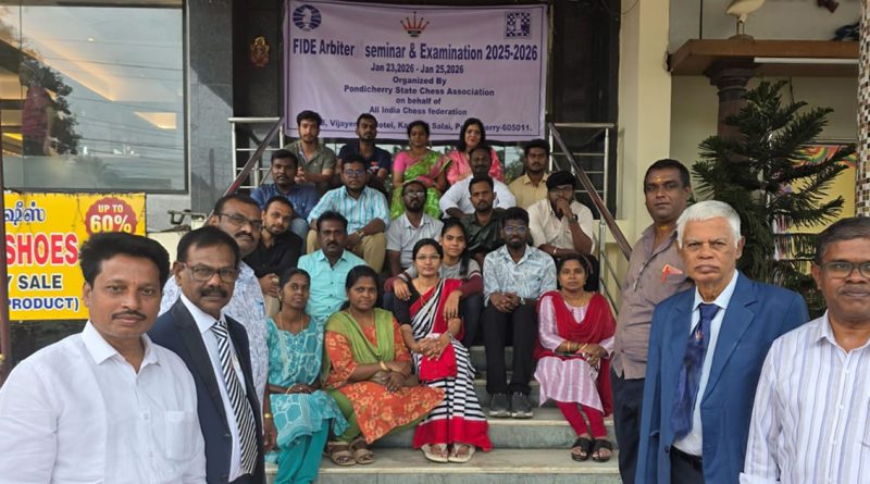 From 23rd to 25th January 2026, a FIDE Arbiters’ Seminar was organized in Puducherry (IND) by the All India Chess Federation, under the auspices of FIDE.